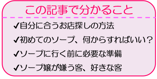 ソープ初心者がいきなりお店探しをするのは、なかなかハードルが高く難しいですよね。