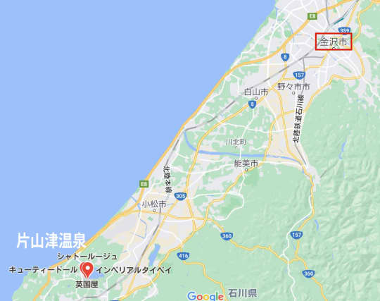 片山津温泉は加賀市にあります。金沢からは車で40分ほどです。
