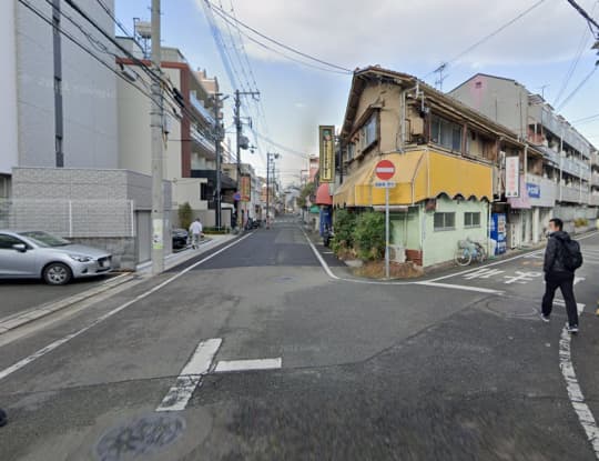 そうすると1本目の十字路に当たりますので、ここを画像左側に曲がってください。