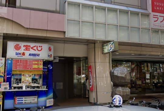 「性竜門」は、このビルの5階です。所要時間は5分です。