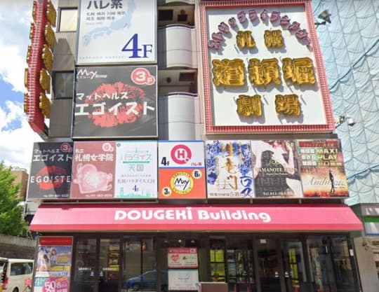 直進を続けていると、右手に「道劇ビル」(札幌道頓堀劇場ビル)が見えてきます。