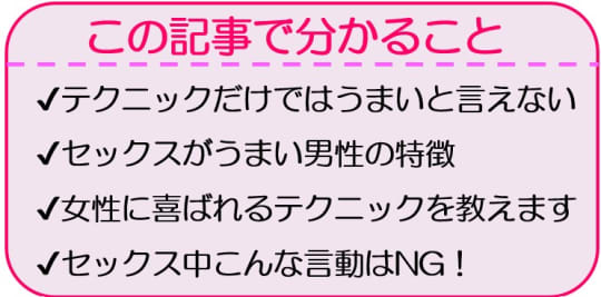 セックスがうまい男性の特徴や、必須のテクニック、体験談などを紹介していきます。