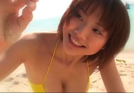 タイでの収録で、黄色いビキニからこぼれ落ちそうなIカップのおっぱい。