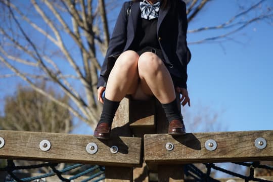 両サイドに紙を結った彼女のセーラー服姿は完全に犯罪的です。誰が見ても本物の高校生。しかも、純白のパンティーの下は「綺麗すぎるパイパン」。